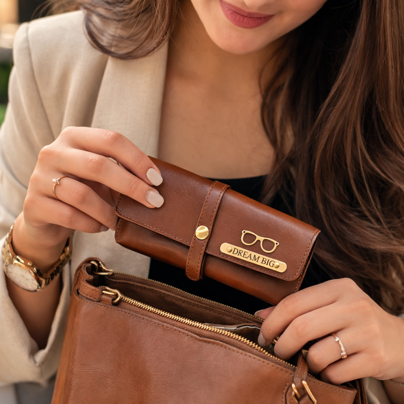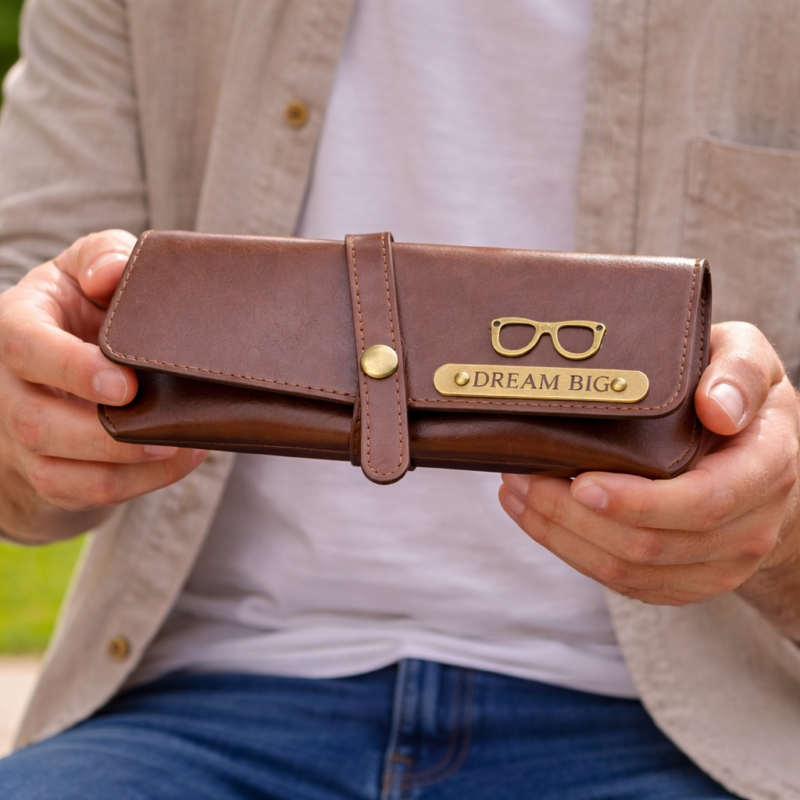 Personalized Brown Leather Sunglasses Case