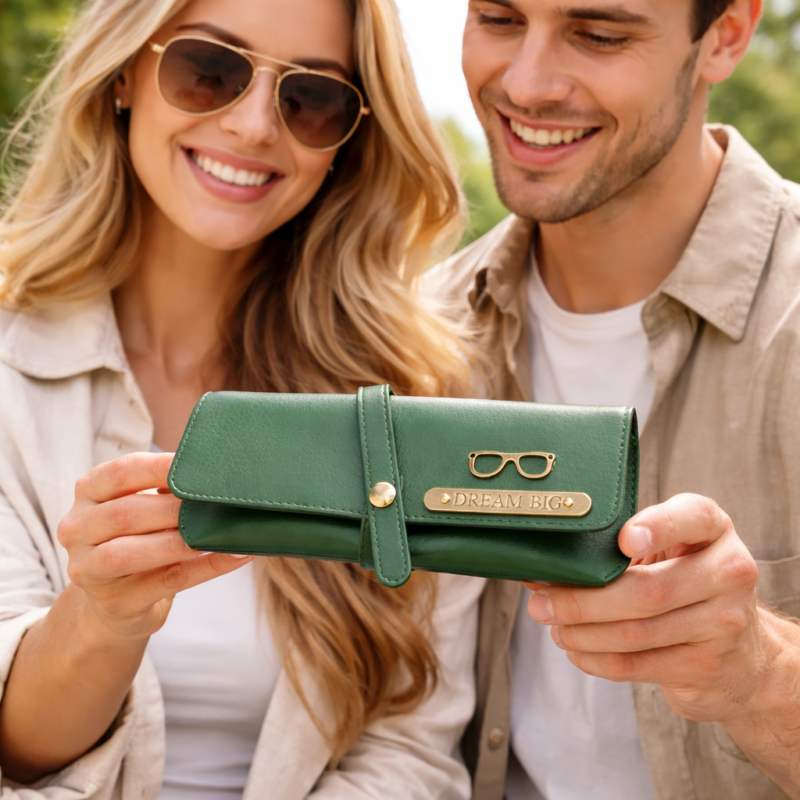 Personalized Green Leather Sunglasses Case